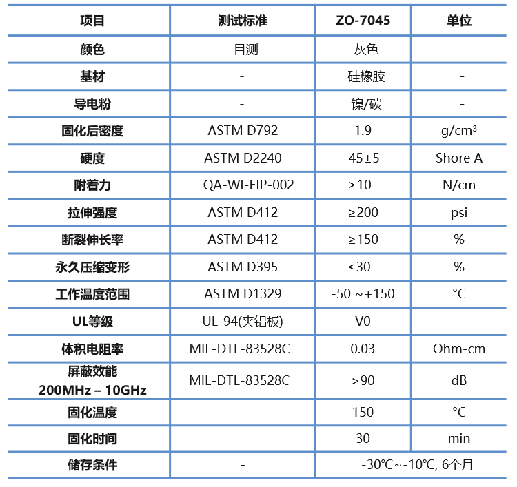 MZ-7019 是一款以镍包碳填充单组份硅弹性体形式的高温硫化导电胶水,具有良好的弹性及附着力。MZ-7019 具有良好的压缩性和优异的导电性,