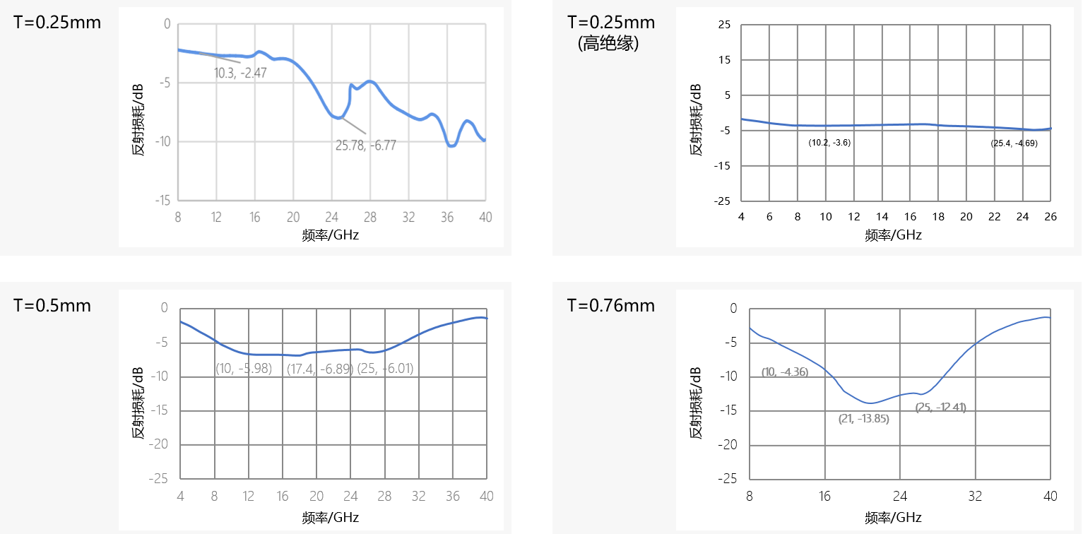 常见厚度对应的反射损耗曲线